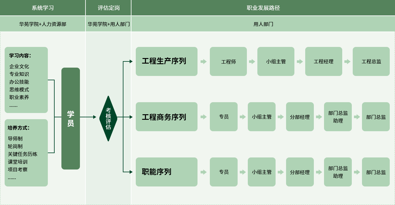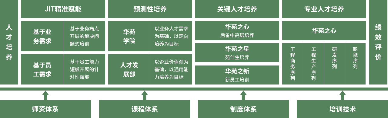 以企業(yè)文化為導(dǎo)向,通過人才培養(yǎng)和績效評價雙輪驅(qū)動,打造華苑園林基因的人才供應(yīng)鏈系統(tǒng)