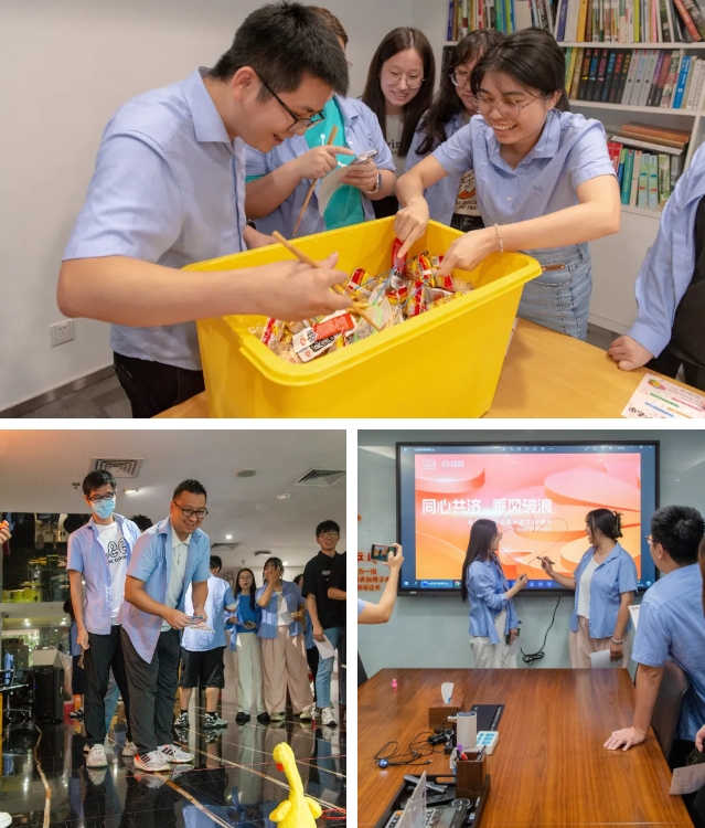 活動(dòng)伊始,我們通過一系列有趣的互動(dòng)環(huán)節(jié)拉開了司慶的序幕,包括“圈大鵝挑戰(zhàn)”、“蒙眼撈零食”、“單手反水杯”、“筷子夾乒乓”、“同心與同德”等精彩游戲。